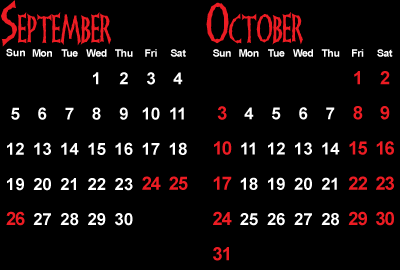 October 1,2,3,8,9,10,15,16,17,22,23,24,29,30,31